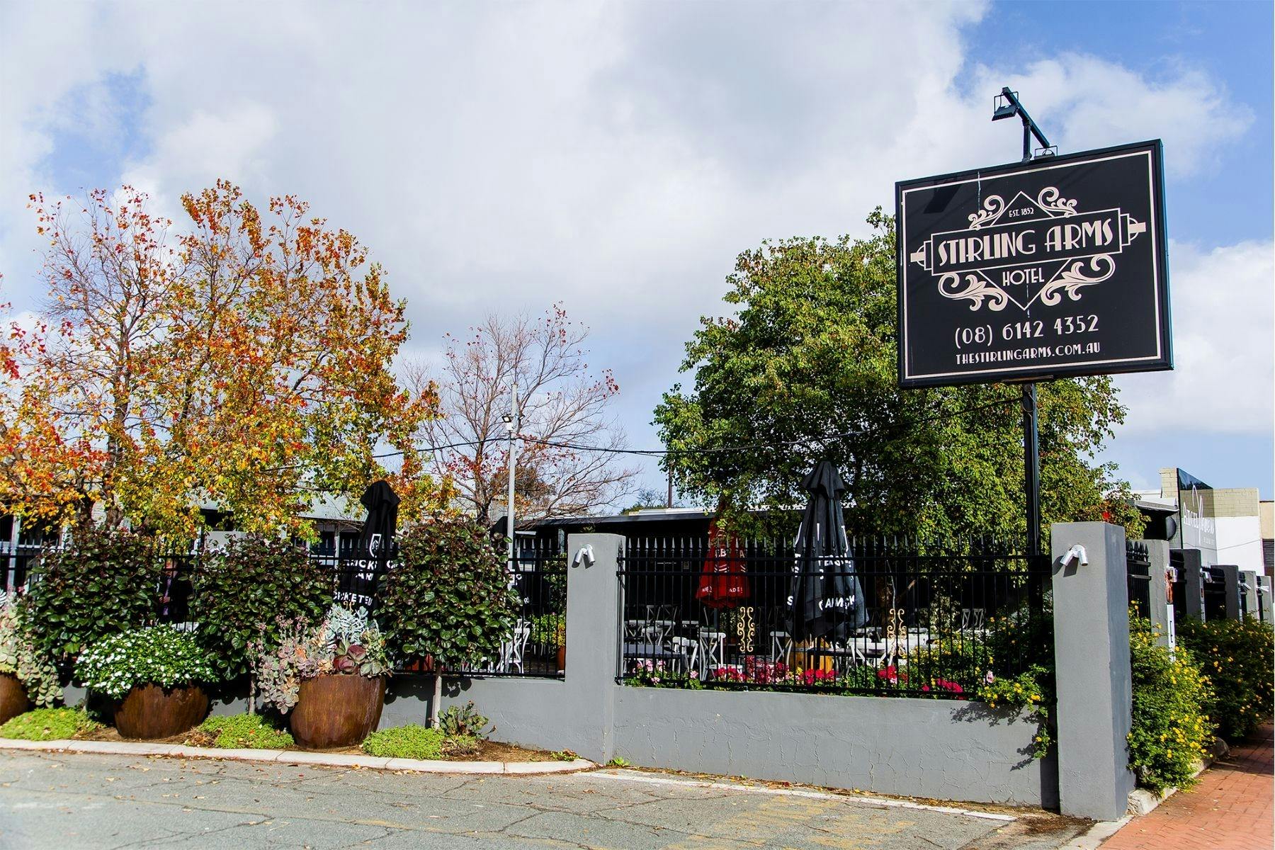 The Stirling Arms Hotel is located in the heart of historic Guildford in Western Australia close to Perth's wine and food region, the Swan Valley. Only a 25 minute drive from Perth CBD, and a short stroll from Guildford train station.
